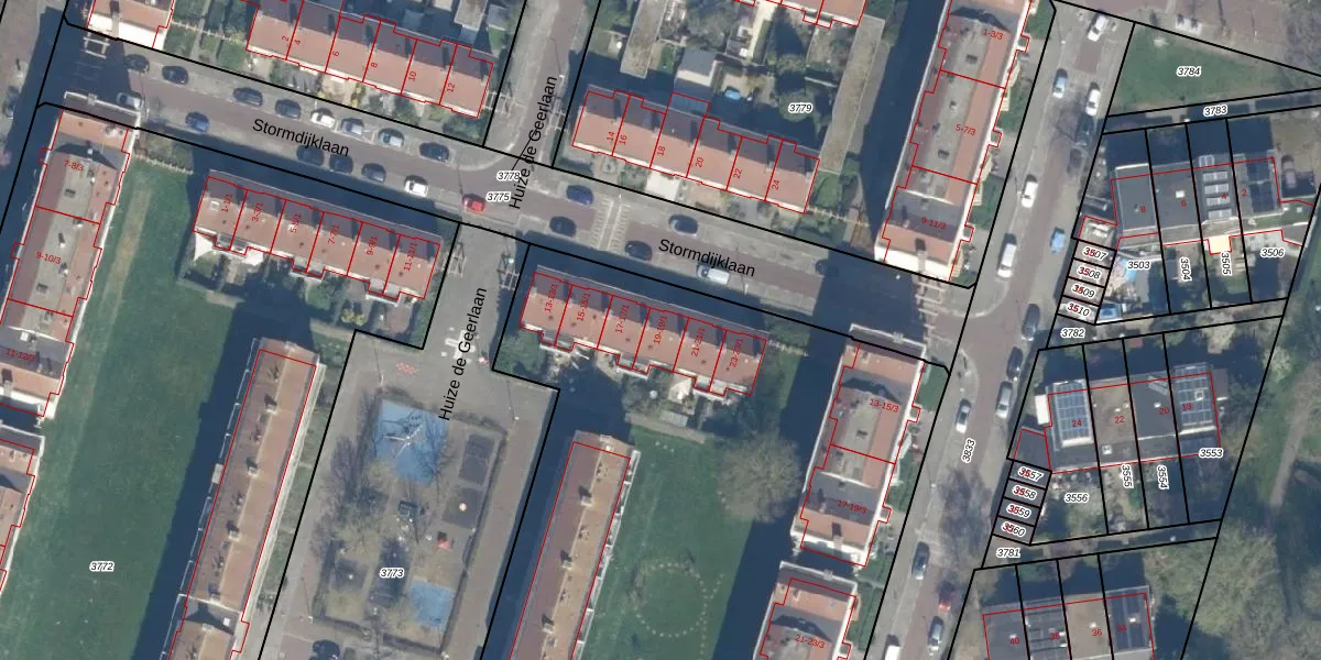 Het perceel waarop Stormdijklaan 19-1 staat heeft een oppervlakte van 7890 m². Dit is een zeer groot perceel. De perceeloppervlakte wordt geregistreerd door het Kadaster. Gedetailleerde informatie over de maten van dit perceel kunt u vinden in het rapport Kadastrale kaart met maatvoering van Stormdijklaan 19-1.