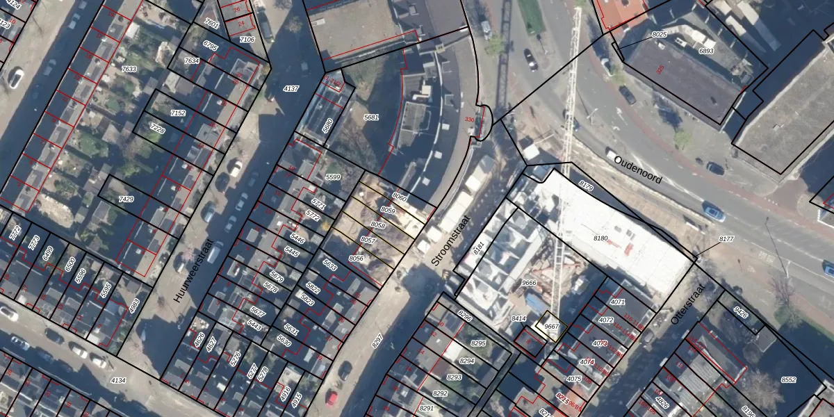Gebruik de zoekbalk of klik op een perceel voor informatie over de adressen binnen dit perceel.