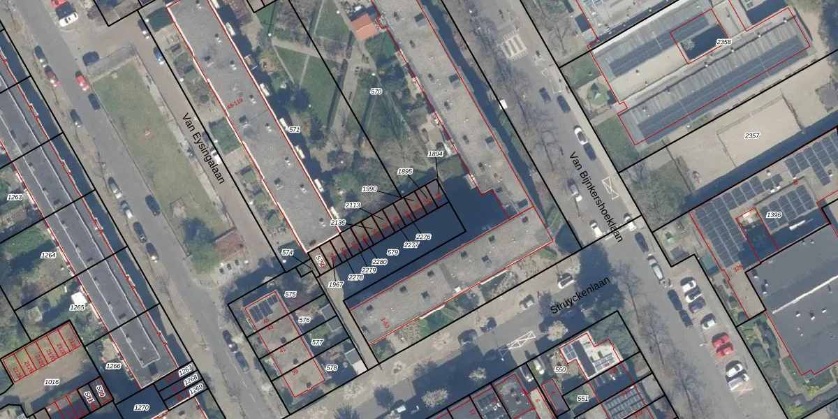 Het perceel waarop Struyckenlaan 55-J staat heeft een oppervlakte van 19 m². Dit is een klein perceel. De perceeloppervlakte wordt geregistreerd door het Kadaster. Gedetailleerde informatie over de maten van dit perceel kunt u vinden in het rapport Kadastrale kaart met maatvoering van Struyckenlaan 55-J.