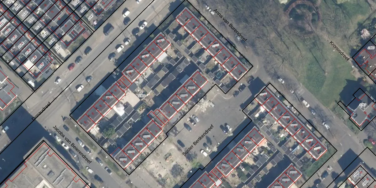Suster Bertkendreef 5 is gelegen op kadastraal perceel UTT00H1493. Deze kadastrale aanduiding is uniek en wordt gebruikt door het Kadaster om eigendomsrechten en andere zakelijke rechten vast te leggen. Het perceel maakt onderdeel uit van de kadastrale gemeente Utrecht.