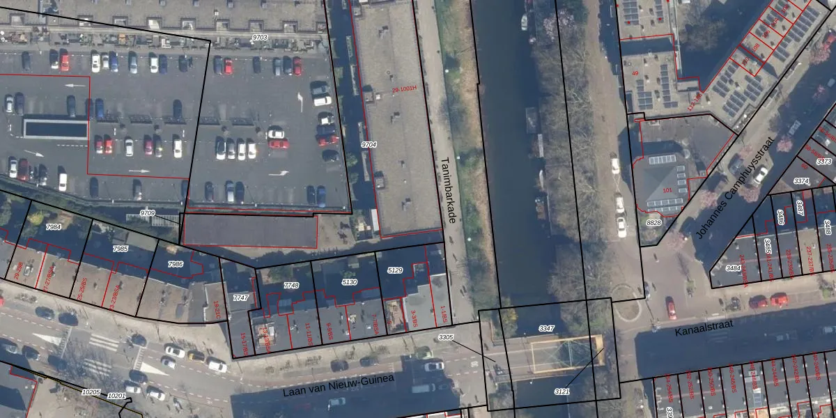 Tanimbarkade 1000-C is gelegen op kadastraal perceel CTR00C9704. Deze kadastrale aanduiding is uniek en wordt gebruikt door het Kadaster om eigendomsrechten en andere zakelijke rechten vast te leggen. Het perceel maakt onderdeel uit van de kadastrale gemeente Catharijne.