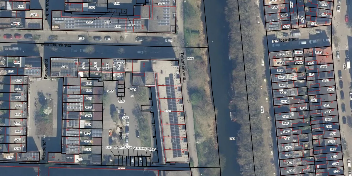 Tanimbarkade 11 is gelegen op kadastraal perceel CTR00C9121. Deze kadastrale aanduiding is uniek en wordt gebruikt door het Kadaster om eigendomsrechten en andere zakelijke rechten vast te leggen. Het perceel maakt onderdeel uit van de kadastrale gemeente Catharijne.