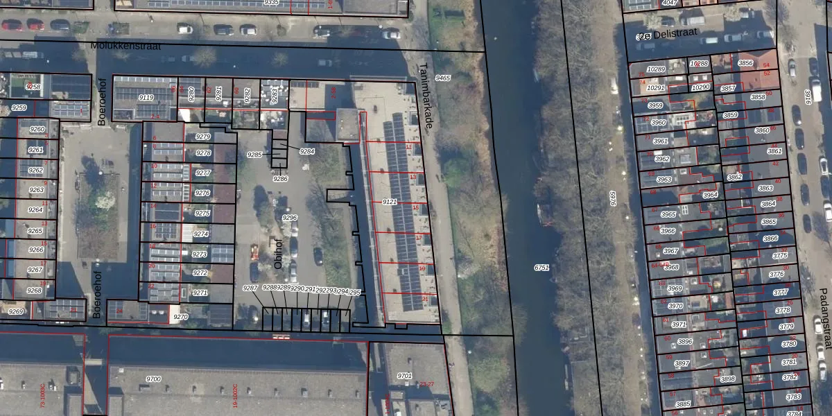Tanimbarkade 15 is gelegen op kadastraal perceel CTR00C9121. Deze kadastrale aanduiding is uniek en wordt gebruikt door het Kadaster om eigendomsrechten en andere zakelijke rechten vast te leggen. Het perceel maakt onderdeel uit van de kadastrale gemeente Catharijne.