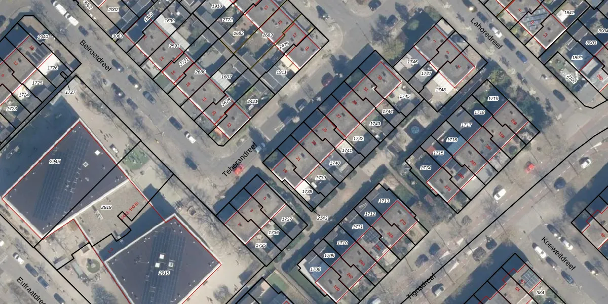 Het perceel waarop Teherandreef 21 staat heeft een oppervlakte van 158 m². Dit is een middelgroot perceel. De perceeloppervlakte wordt geregistreerd door het Kadaster. Gedetailleerde informatie over de maten van dit perceel kunt u vinden in het rapport Kadastrale kaart met maatvoering van Teherandreef 21.