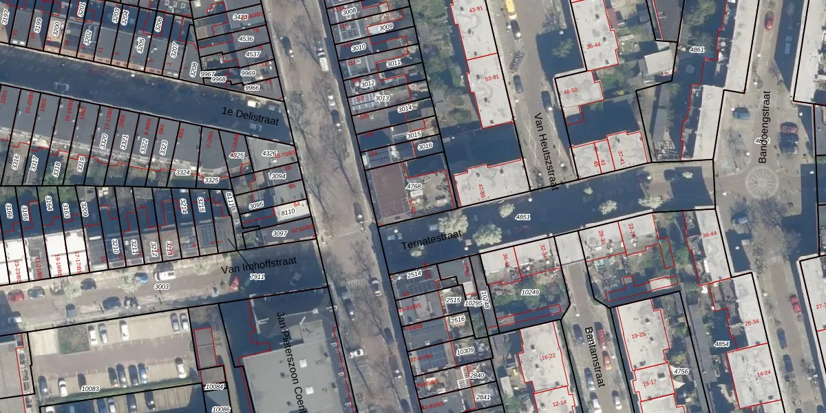 Het perceel waarop Ternatestraat 67 staat heeft een oppervlakte van 273 m². Dit is een middelgroot perceel. De perceeloppervlakte wordt geregistreerd door het Kadaster. Gedetailleerde informatie over de maten van dit perceel kunt u vinden in het rapport Kadastrale kaart met maatvoering van Ternatestraat 67.