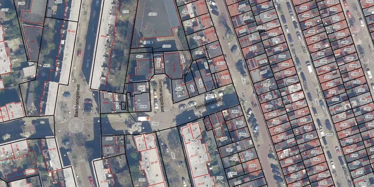 Ternatestraat 7 is gelegen op kadastraal perceel CTR00C5466. Deze kadastrale aanduiding is uniek en wordt gebruikt door het Kadaster om eigendomsrechten en andere zakelijke rechten vast te leggen. Het perceel maakt onderdeel uit van de kadastrale gemeente Catharijne.