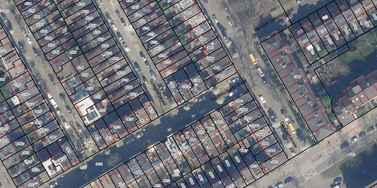 Het perceel waarop Tesselschadestraat 3 staat heeft een oppervlakte van 110 m². Dit is een middelgroot perceel. De perceeloppervlakte wordt geregistreerd door het Kadaster. Gedetailleerde informatie over de maten van dit perceel kunt u vinden in het rapport Kadastrale kaart met maatvoering van Tesselschadestraat 3.