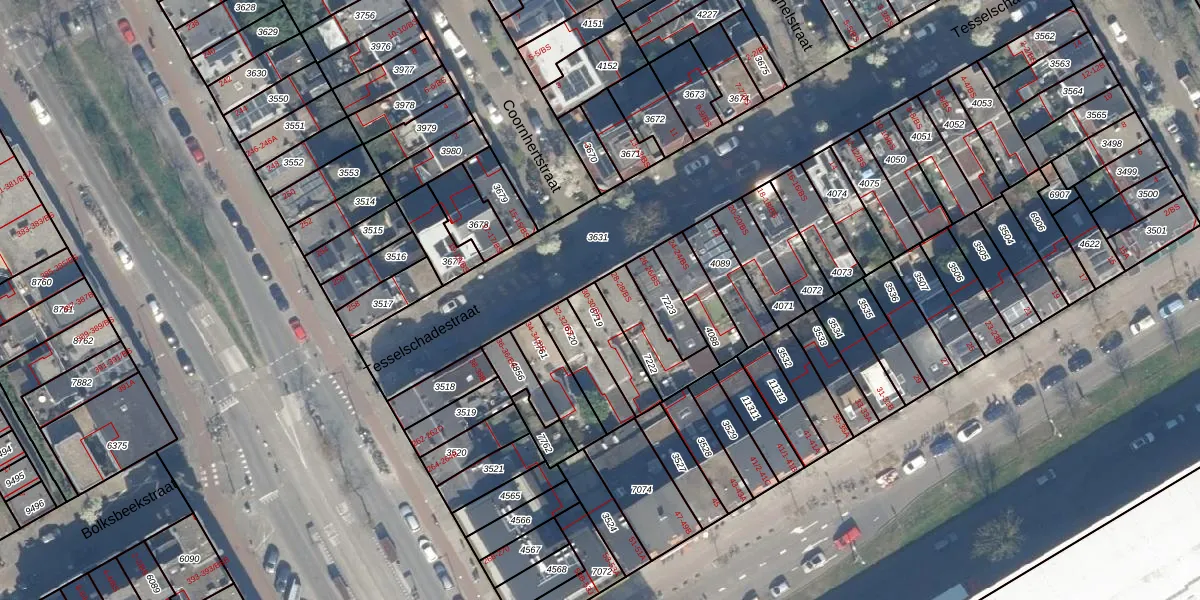 Het perceel waarop Tesselschadestraat 30 staat heeft een oppervlakte van 122 m². Dit is een middelgroot perceel. De perceeloppervlakte wordt geregistreerd door het Kadaster. Gedetailleerde informatie over de maten van dit perceel kunt u vinden in het rapport Kadastrale kaart met maatvoering van Tesselschadestraat 30.