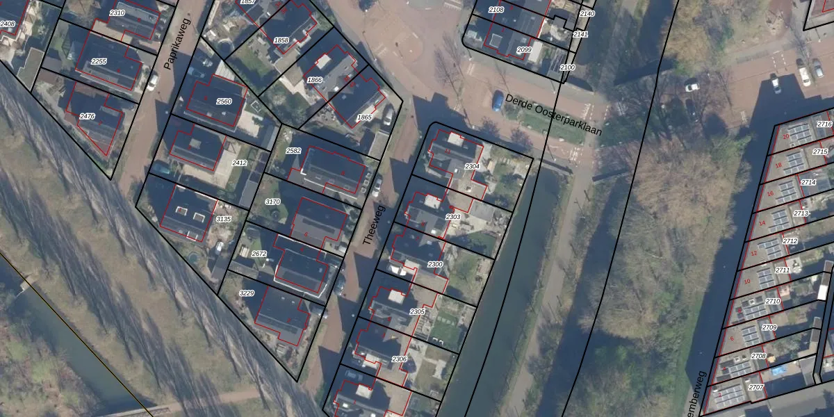 Gebruik de zoekbalk of klik op een perceel voor informatie over de adressen binnen dit perceel.