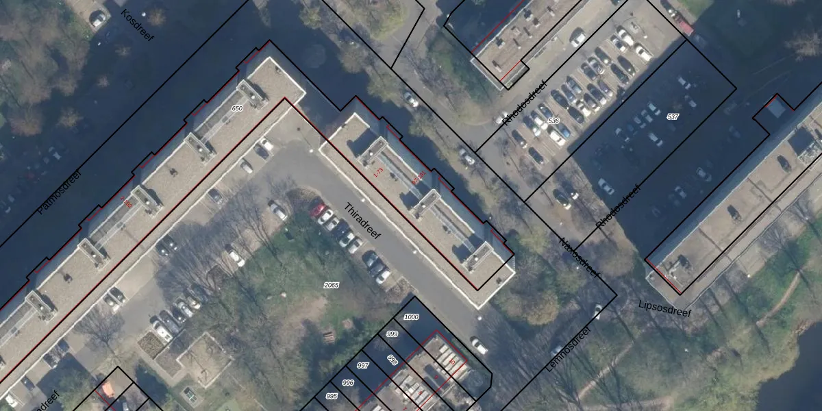 Het perceel waarop Thiradreef 11 staat heeft een oppervlakte van 2215 m². Dit is een zeer groot perceel. De perceeloppervlakte wordt geregistreerd door het Kadaster. Gedetailleerde informatie over de maten van dit perceel kunt u vinden in het rapport Kadastrale kaart met maatvoering van Thiradreef 11.
