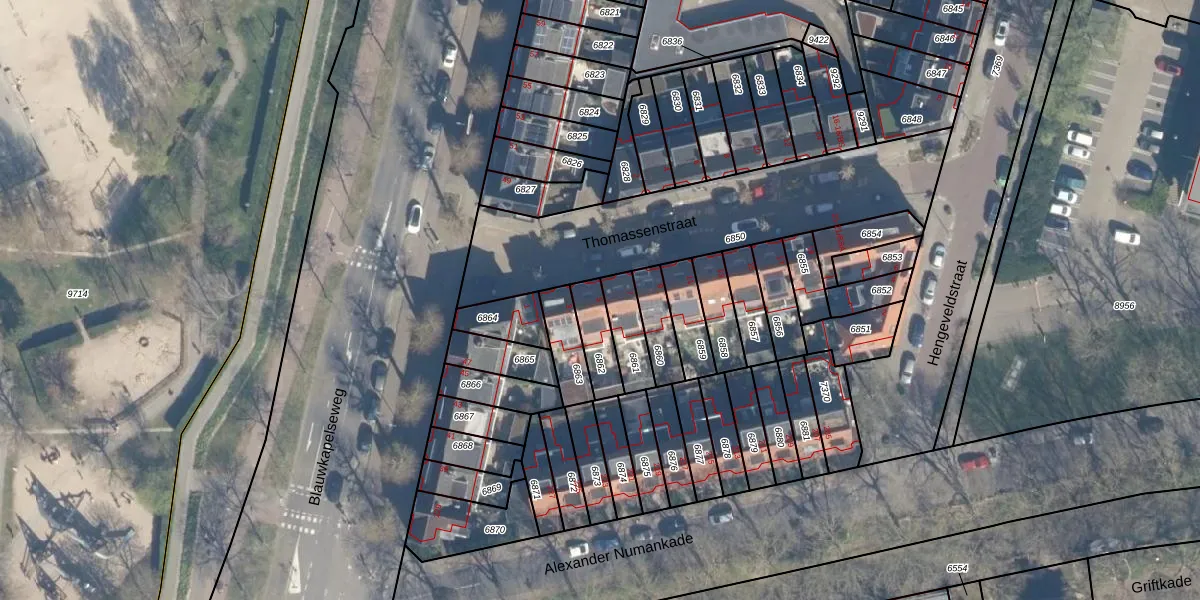 Het perceel waarop Thomassenstraat 5 staat heeft een oppervlakte van 103 m². Dit is een middelgroot perceel. De perceeloppervlakte wordt geregistreerd door het Kadaster. Gedetailleerde informatie over de maten van dit perceel kunt u vinden in het rapport Kadastrale kaart met maatvoering van Thomassenstraat 5.