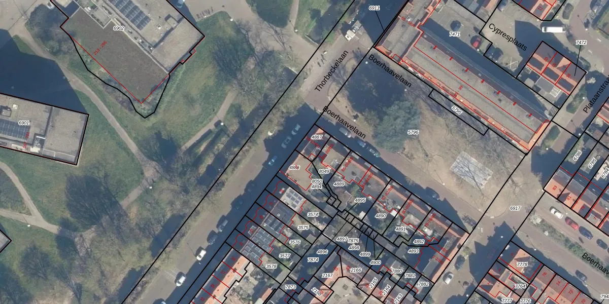 Thorbeckelaan 53 is gelegen op kadastraal perceel LWR01B4887. Deze kadastrale aanduiding is uniek en wordt gebruikt door het Kadaster om eigendomsrechten en andere zakelijke rechten vast te leggen. Het perceel maakt onderdeel uit van de kadastrale gemeente Lauwerecht.