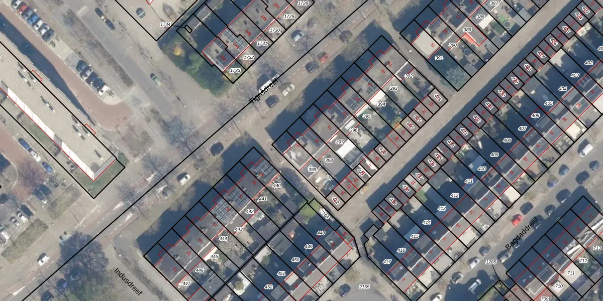 Tigrisdreef 37 is gelegen op kadastraal perceel UTT00F399. Deze kadastrale aanduiding is uniek en wordt gebruikt door het Kadaster om eigendomsrechten en andere zakelijke rechten vast te leggen. Het perceel maakt onderdeel uit van de kadastrale gemeente Utrecht.