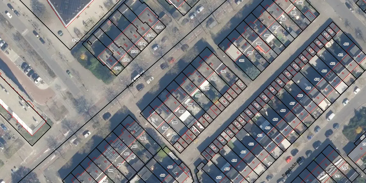 Tigrisdreef 43 is gelegen op kadastraal perceel UTT00F396. Deze kadastrale aanduiding is uniek en wordt gebruikt door het Kadaster om eigendomsrechten en andere zakelijke rechten vast te leggen. Het perceel maakt onderdeel uit van de kadastrale gemeente Utrecht.