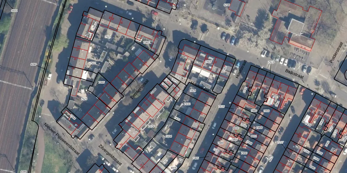 Het perceel waarop Timmerstraat 43-C staat heeft een oppervlakte van 40 m². Dit is een klein perceel. De perceeloppervlakte wordt geregistreerd door het Kadaster. Gedetailleerde informatie over de maten van dit perceel kunt u vinden in het rapport Kadastrale kaart met maatvoering van Timmerstraat 43-C.