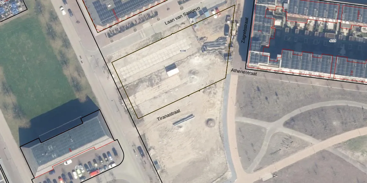 Tiranastraat 16 is gelegen op kadastraal perceel CTR00F4198. Deze kadastrale aanduiding is uniek en wordt gebruikt door het Kadaster om eigendomsrechten en andere zakelijke rechten vast te leggen. Het perceel maakt onderdeel uit van de kadastrale gemeente Catharijne.