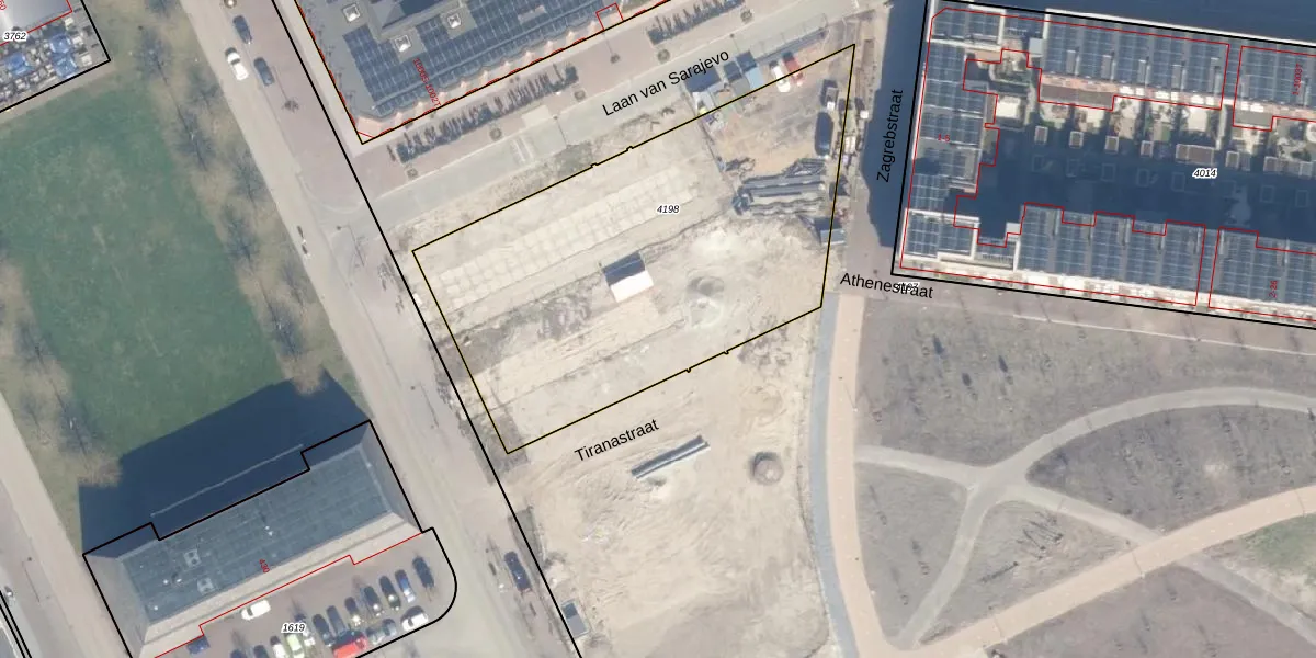 Het perceel waarop Tiranastraat 46 staat heeft een oppervlakte van 2151 m². Dit is een zeer groot perceel. De perceeloppervlakte wordt geregistreerd door het Kadaster. Gedetailleerde informatie over de maten van dit perceel kunt u vinden in het rapport Kadastrale kaart met maatvoering van Tiranastraat 46.