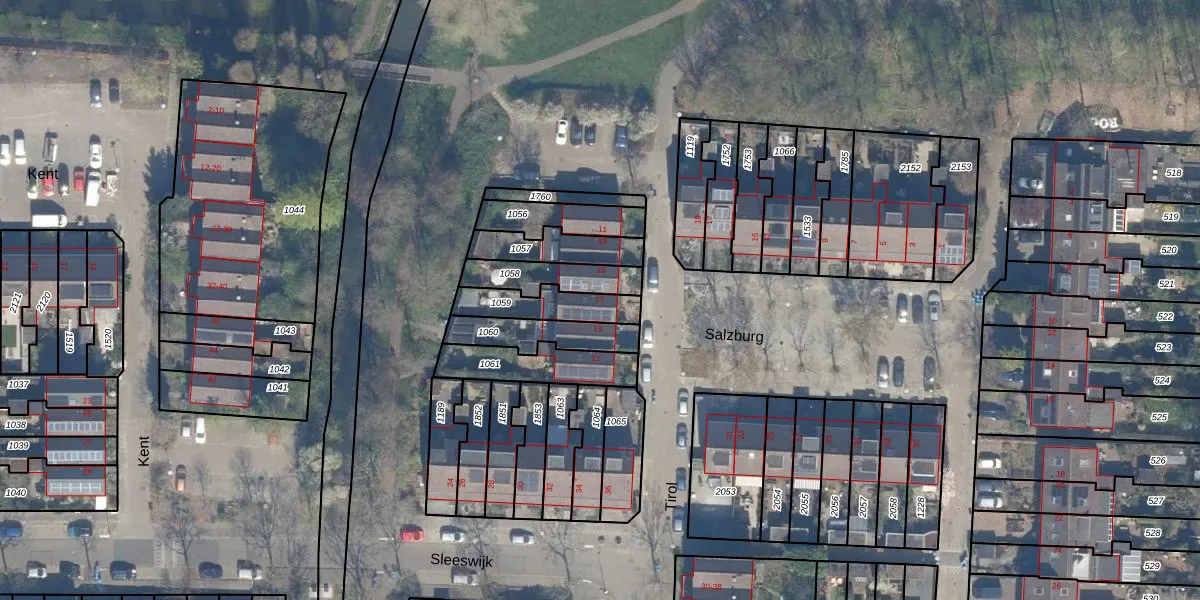 Gebruik de zoekbalk of klik op een perceel voor informatie over de adressen binnen dit perceel.