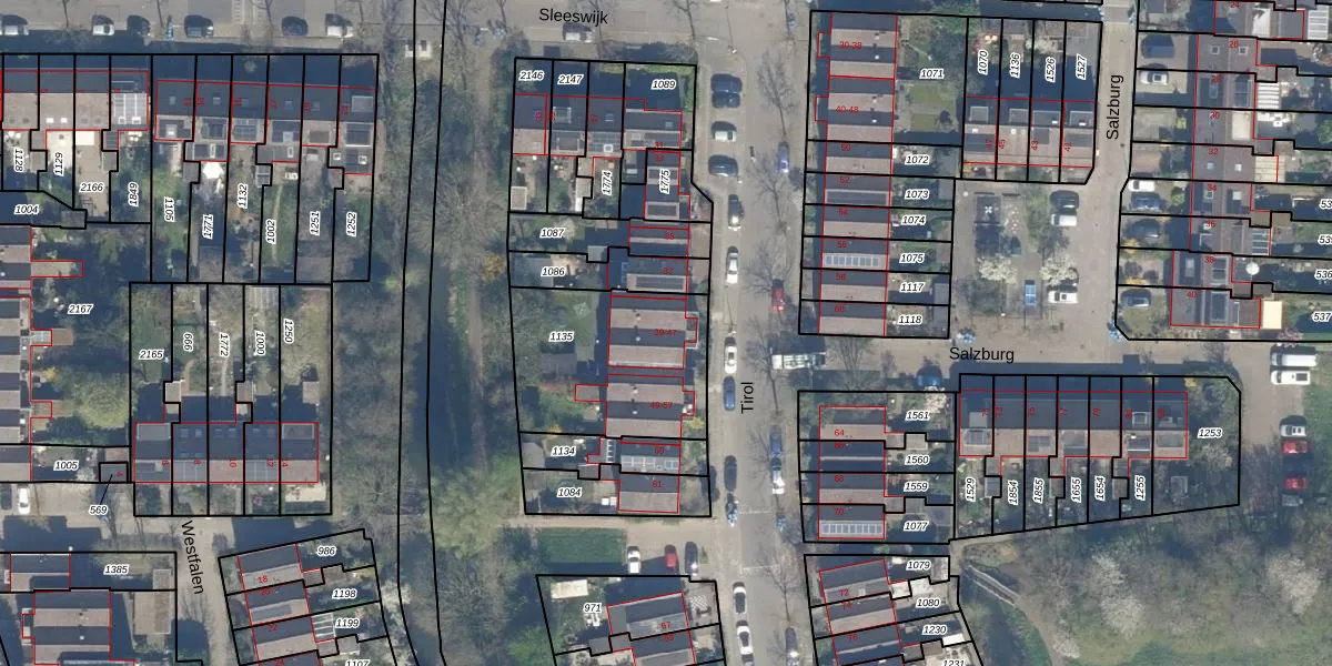 Het perceel waarop Tirol 45 staat heeft een oppervlakte van 635 m². Dit is een groot perceel. De perceeloppervlakte wordt geregistreerd door het Kadaster. Gedetailleerde informatie over de maten van dit perceel kunt u vinden in het rapport Kadastrale kaart met maatvoering van Tirol 45.