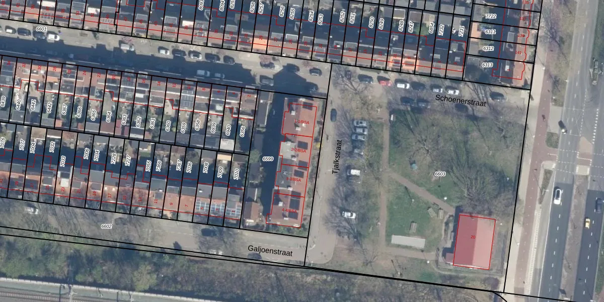 Het perceel waarop Tjalkstraat 2 staat heeft een oppervlakte van 1067 m². Dit is een zeer groot perceel. De perceeloppervlakte wordt geregistreerd door het Kadaster. Gedetailleerde informatie over de maten van dit perceel kunt u vinden in het rapport Kadastrale kaart met maatvoering van Tjalkstraat 2.