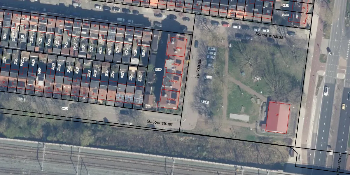 Het perceel waarop Tjalkstraat 3-BSA staat heeft een oppervlakte van 1067 m². Dit is een zeer groot perceel. De perceeloppervlakte wordt geregistreerd door het Kadaster. Gedetailleerde informatie over de maten van dit perceel kunt u vinden in het rapport Kadastrale kaart met maatvoering van Tjalkstraat 3-BSA.