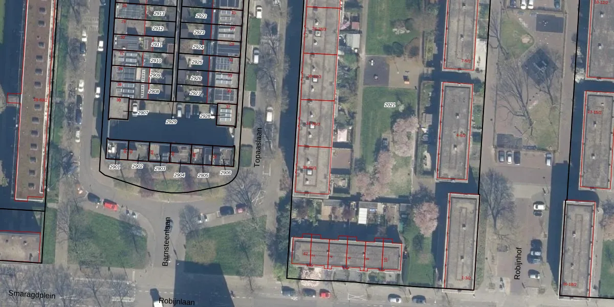 Topaaslaan 38-3 is gelegen op kadastraal perceel TSG00B2021. Deze kadastrale aanduiding is uniek en wordt gebruikt door het Kadaster om eigendomsrechten en andere zakelijke rechten vast te leggen. Het perceel maakt onderdeel uit van de kadastrale gemeente Tolsteeg.