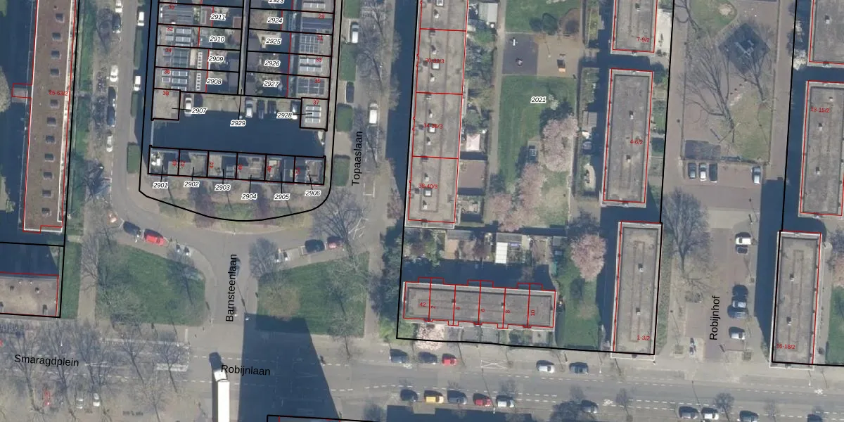Topaaslaan 40-3 is gelegen op kadastraal perceel TSG00B2021. Deze kadastrale aanduiding is uniek en wordt gebruikt door het Kadaster om eigendomsrechten en andere zakelijke rechten vast te leggen. Het perceel maakt onderdeel uit van de kadastrale gemeente Tolsteeg.