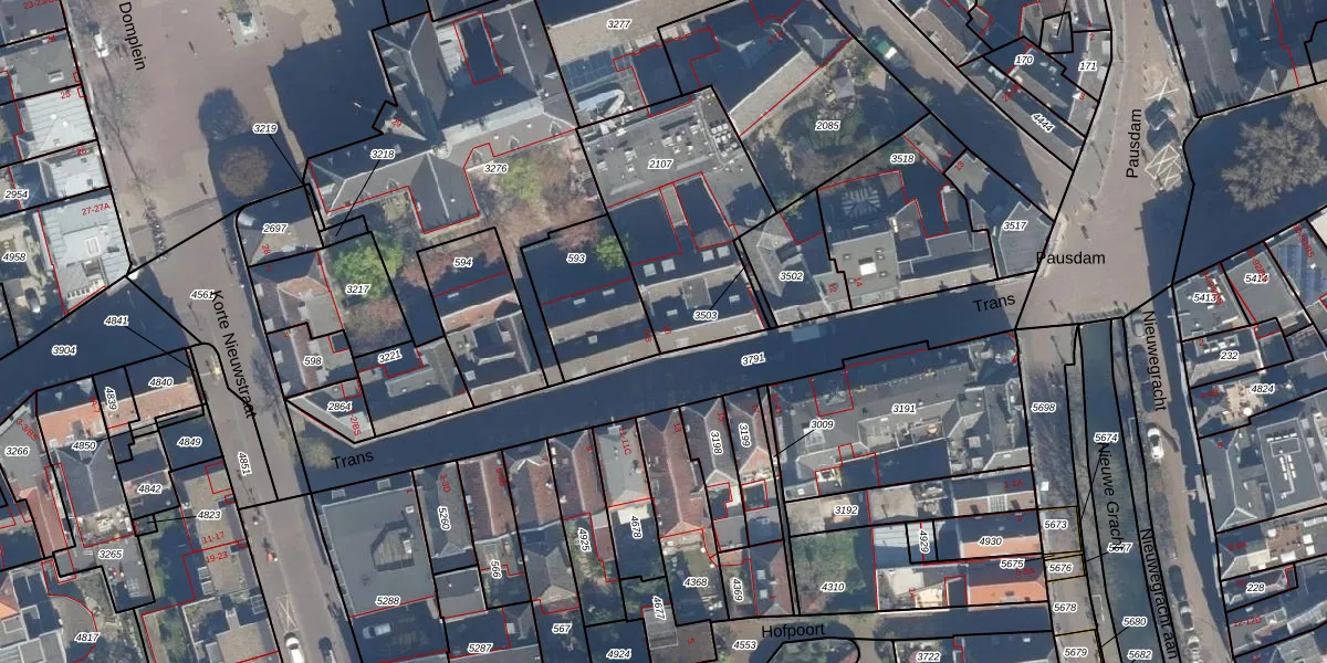 Trans 14 is gelegen op kadastraal perceel UTT00B2107. Deze kadastrale aanduiding is uniek en wordt gebruikt door het Kadaster om eigendomsrechten en andere zakelijke rechten vast te leggen. Het perceel maakt onderdeel uit van de kadastrale gemeente Utrecht.