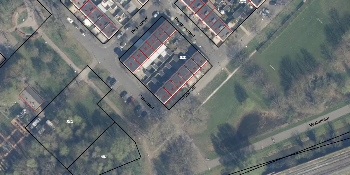 Tritondreef 21 is gelegen op kadastraal perceel UTT00H1519. Deze kadastrale aanduiding is uniek en wordt gebruikt door het Kadaster om eigendomsrechten en andere zakelijke rechten vast te leggen. Het perceel maakt onderdeel uit van de kadastrale gemeente Utrecht.