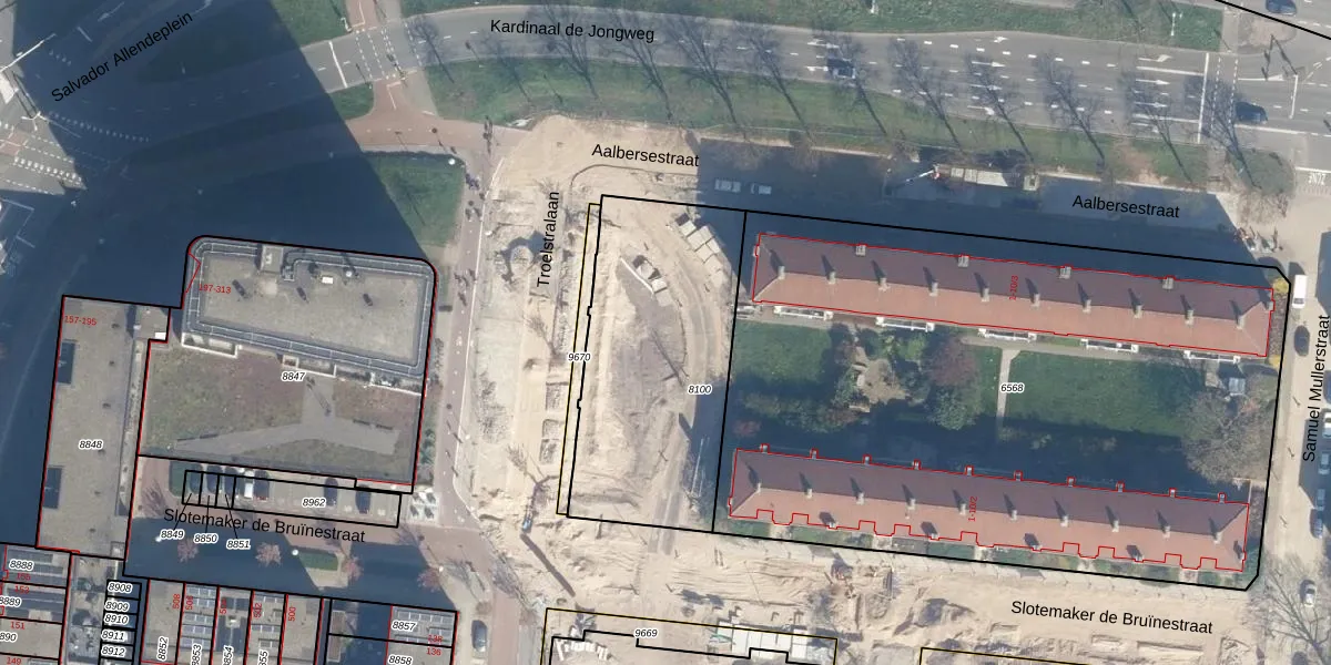 Het perceel waarop Troelstralaan 197 staat heeft een oppervlakte van 1055 m². Dit is een zeer groot perceel. De perceeloppervlakte wordt geregistreerd door het Kadaster. Gedetailleerde informatie over de maten van dit perceel kunt u vinden in het rapport Kadastrale kaart met maatvoering van Troelstralaan 197.