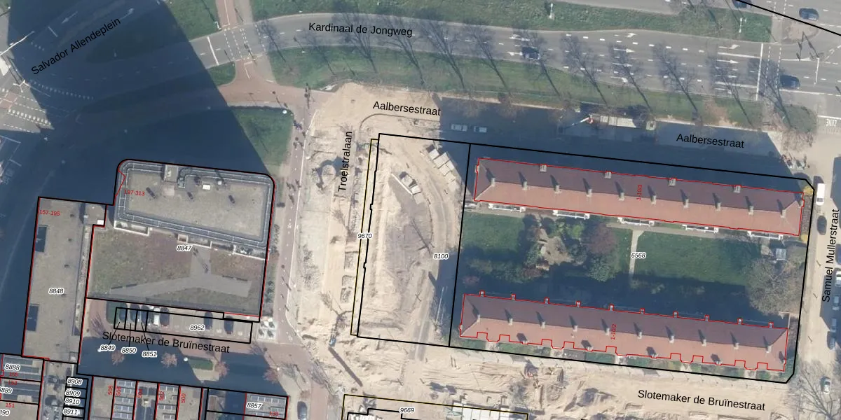Het perceel waarop Troelstralaan 199 staat heeft een oppervlakte van 1055 m². Dit is een zeer groot perceel. De perceeloppervlakte wordt geregistreerd door het Kadaster. Gedetailleerde informatie over de maten van dit perceel kunt u vinden in het rapport Kadastrale kaart met maatvoering van Troelstralaan 199.