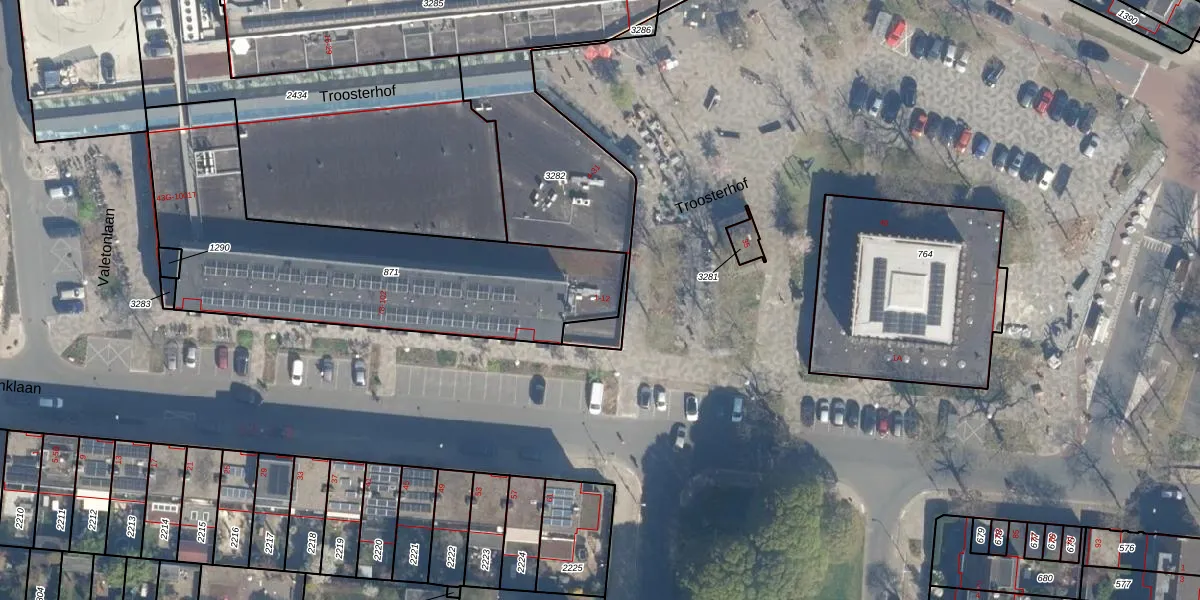 Troosterhof 1 is gelegen op kadastraal perceel UTT00L871. Deze kadastrale aanduiding is uniek en wordt gebruikt door het Kadaster om eigendomsrechten en andere zakelijke rechten vast te leggen. Het perceel maakt onderdeel uit van de kadastrale gemeente Utrecht.