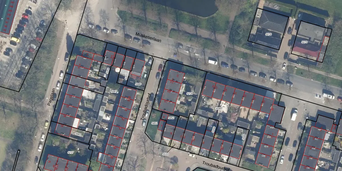 Het perceel waarop Troubadourhof 3 staat heeft een oppervlakte van 720 m². Dit is een groot perceel. De perceeloppervlakte wordt geregistreerd door het Kadaster. Gedetailleerde informatie over de maten van dit perceel kunt u vinden in het rapport Kadastrale kaart met maatvoering van Troubadourhof 3.