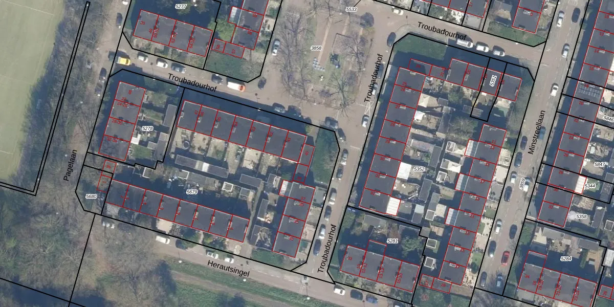 Troubadourhof 40 is gelegen op kadastraal perceel UTT00P5679. Deze kadastrale aanduiding is uniek en wordt gebruikt door het Kadaster om eigendomsrechten en andere zakelijke rechten vast te leggen. Het perceel maakt onderdeel uit van de kadastrale gemeente Utrecht.