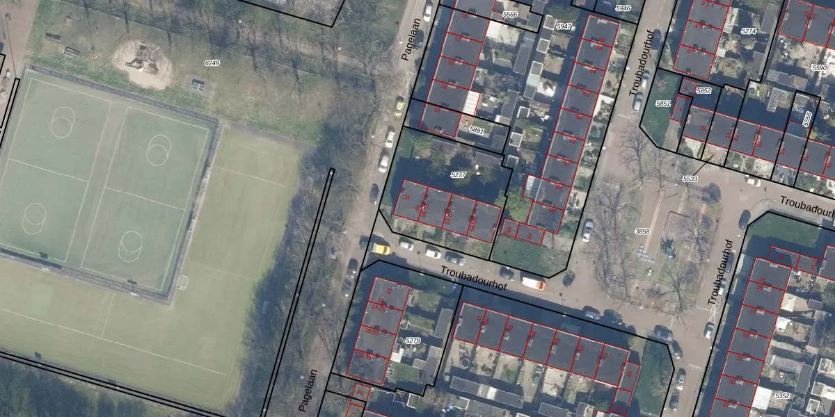Troubadourhof 49 is gelegen op kadastraal perceel UTT00P5277. Deze kadastrale aanduiding is uniek en wordt gebruikt door het Kadaster om eigendomsrechten en andere zakelijke rechten vast te leggen. Het perceel maakt onderdeel uit van de kadastrale gemeente Utrecht.