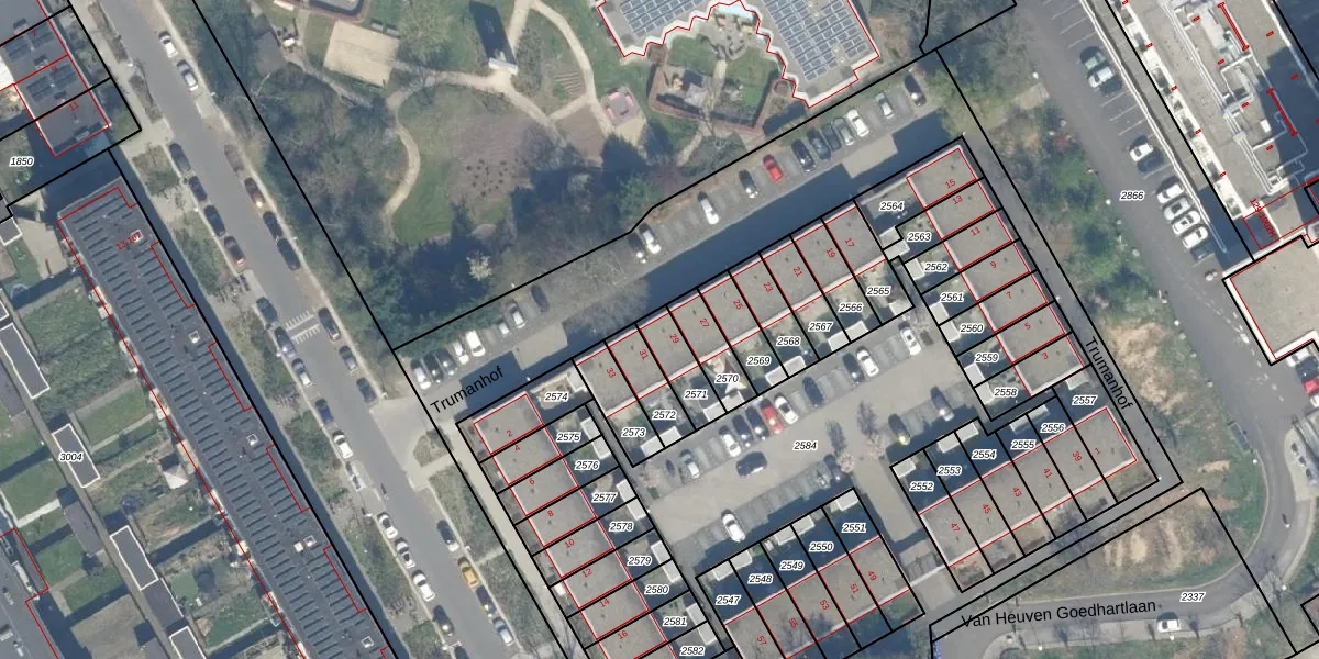 Trumanhof 29 is gelegen op kadastraal perceel UTT00S2571. Deze kadastrale aanduiding is uniek en wordt gebruikt door het Kadaster om eigendomsrechten en andere zakelijke rechten vast te leggen. Het perceel maakt onderdeel uit van de kadastrale gemeente Utrecht.