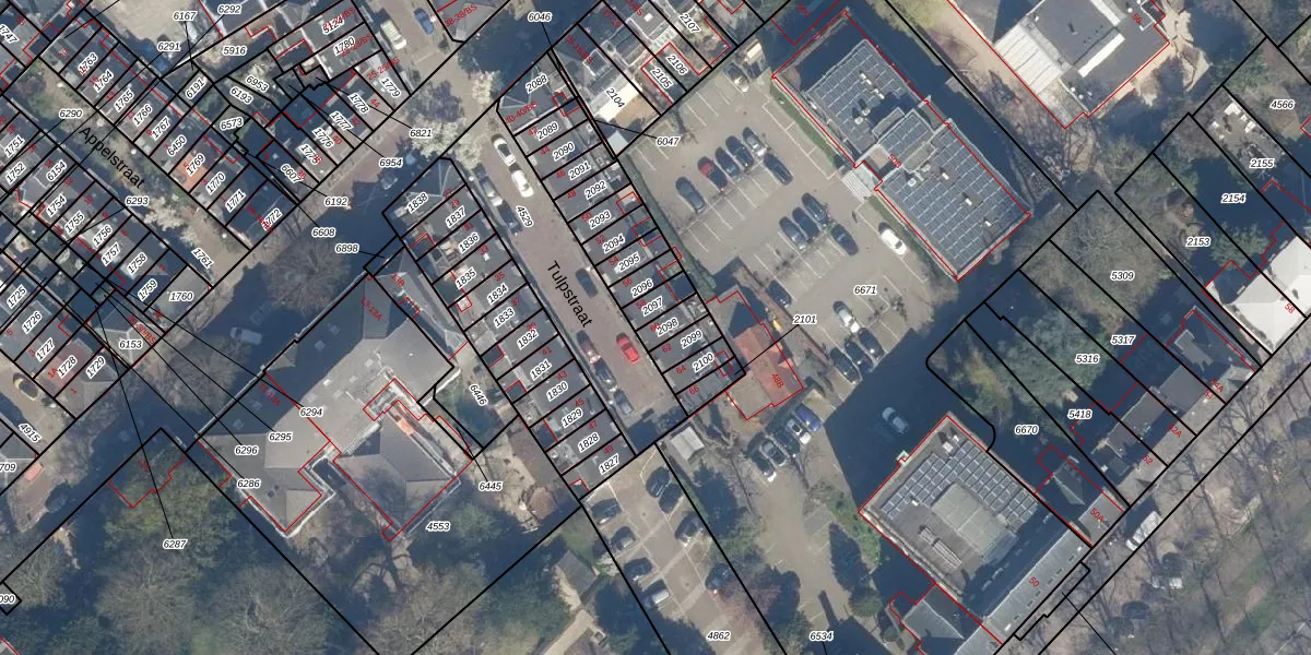 Het perceel waarop Tulpstraat 60 staat heeft een oppervlakte van 45 m². Dit is een klein perceel. De perceeloppervlakte wordt geregistreerd door het Kadaster. Gedetailleerde informatie over de maten van dit perceel kunt u vinden in het rapport Kadastrale kaart met maatvoering van Tulpstraat 60.