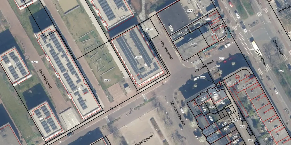 Het adres is gelegen op perceel 10955 in de sectie D en de kadastrale gemeente Catharijne. De kadastrale aanduiding is aldus CTR00-D-10955. De oppervlakte van het perceel is 938 m². Dat is groter dan gemiddeld in Catharijne, waar de gemiddelde perceeloppervlakte op 828,25 m² ligt. Het kleinste perceel in de kadastrale gemeente is 0 m² groot. De grootste perceeloppervlakte is 35,6 ha. Er zijn 55 adressen aanwezig op het perceel. De laatste wijziging in het de Basisregistratie Kadaster (BRK) was op 09-07-2024.