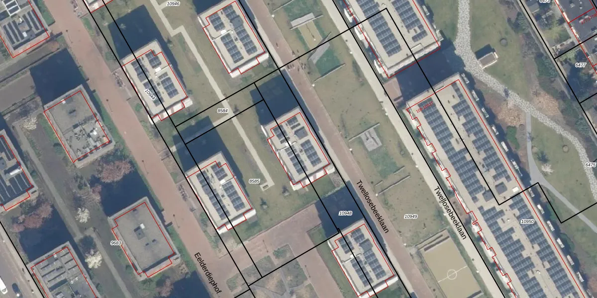 Het perceel waarop Twellosebeeklaan 114 staat heeft een oppervlakte van 1021 m². Dit is een zeer groot perceel. De perceeloppervlakte wordt geregistreerd door het Kadaster. Gedetailleerde informatie over de maten van dit perceel kunt u vinden in het rapport Kadastrale kaart met maatvoering van Twellosebeeklaan 114.