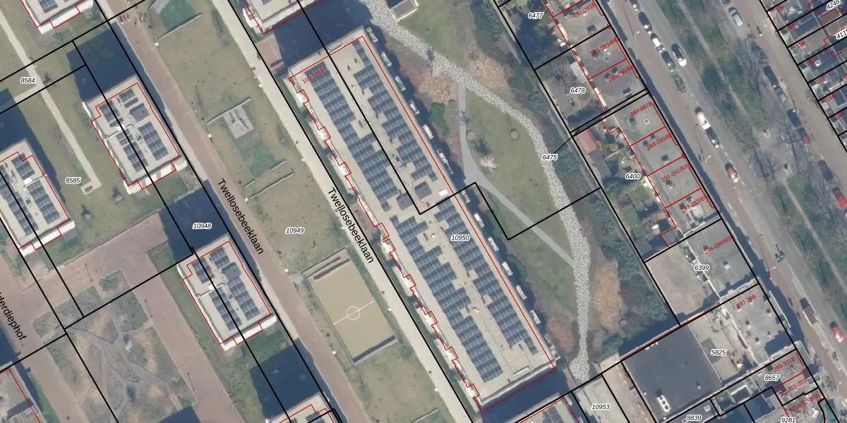 Het perceel waarop Twellosebeeklaan 313 staat heeft een oppervlakte van 7535 m². Dit is een zeer groot perceel. De perceeloppervlakte wordt geregistreerd door het Kadaster. Gedetailleerde informatie over de maten van dit perceel kunt u vinden in het rapport Kadastrale kaart met maatvoering van Twellosebeeklaan 313.