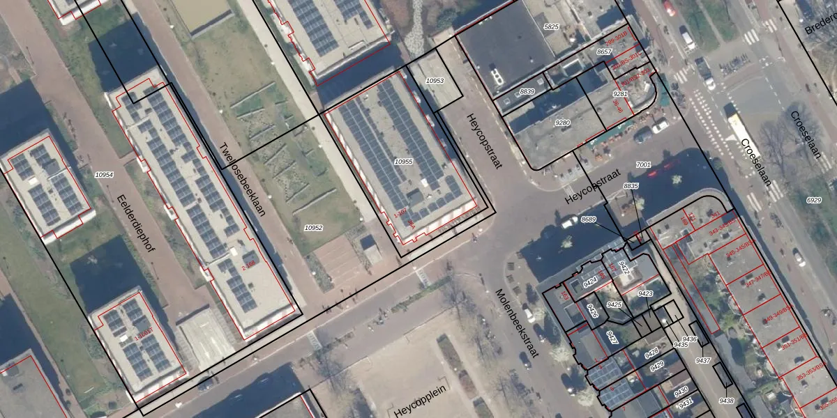 Het adres is gelegen op perceel 10955 in de sectie D en de kadastrale gemeente Catharijne. De kadastrale aanduiding is aldus CTR00-D-10955. De oppervlakte van het perceel is 938 m². Dat is groter dan gemiddeld in Catharijne, waar de gemiddelde perceeloppervlakte op 828,82 m² ligt. Het kleinste perceel in de kadastrale gemeente is 0 m² groot. De grootste perceeloppervlakte is 35,6 ha. Op het perceel liggen in totaal 55 adressen. De huidige grenzen van het perceel zijn digitaal in de Basisregistratie Kadaster (BRK) geregistreerd op 09-07-2024.