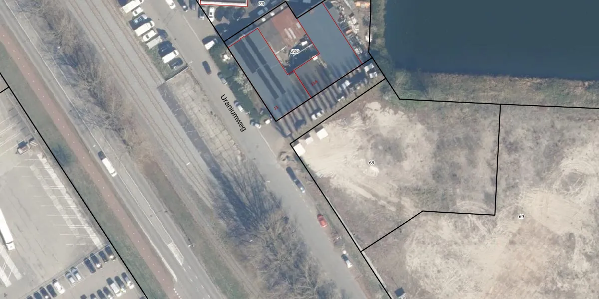 Het perceel waarop Uraniumweg 9 staat heeft een oppervlakte van 2510 m². Dit is een zeer groot perceel. De perceeloppervlakte wordt geregistreerd door het Kadaster. Gedetailleerde informatie over de maten van dit perceel kunt u vinden in het rapport Kadastrale kaart met maatvoering van Uraniumweg 9.