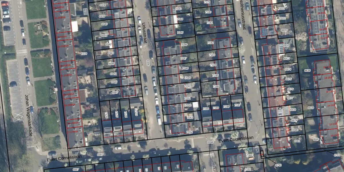 Gebruik de zoekbalk of klik op een perceel voor informatie over de adressen binnen dit perceel.