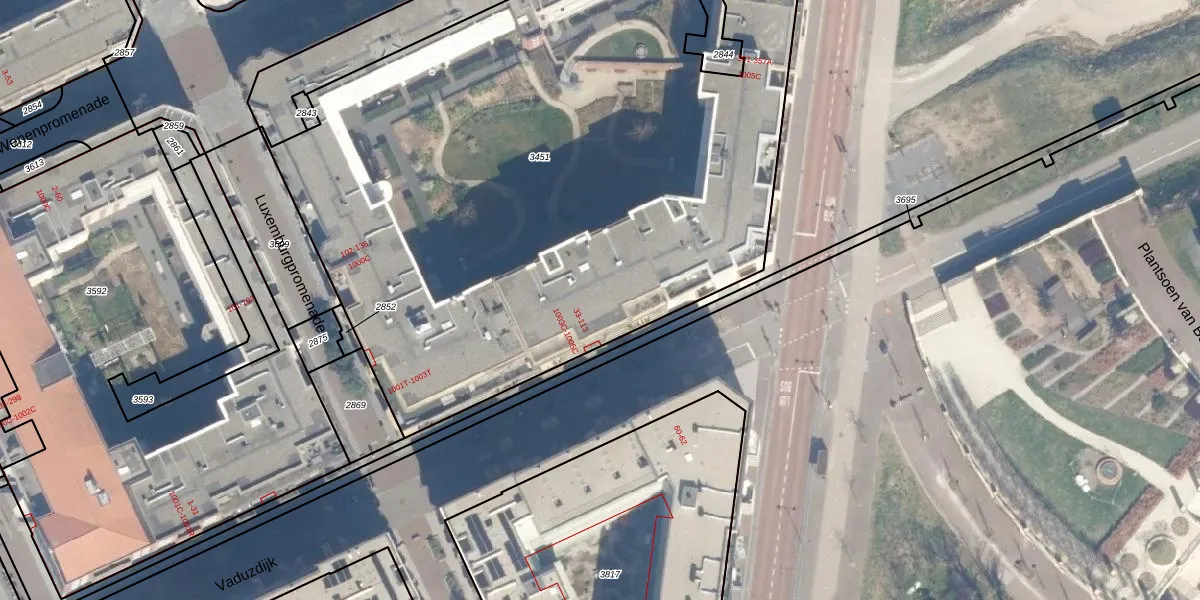 Vaduzdijk 1005-C is gelegen op kadastraal perceel CTR00F3451. Deze kadastrale aanduiding is uniek en wordt gebruikt door het Kadaster om eigendomsrechten en andere zakelijke rechten vast te leggen. Het perceel maakt onderdeel uit van de kadastrale gemeente Catharijne.