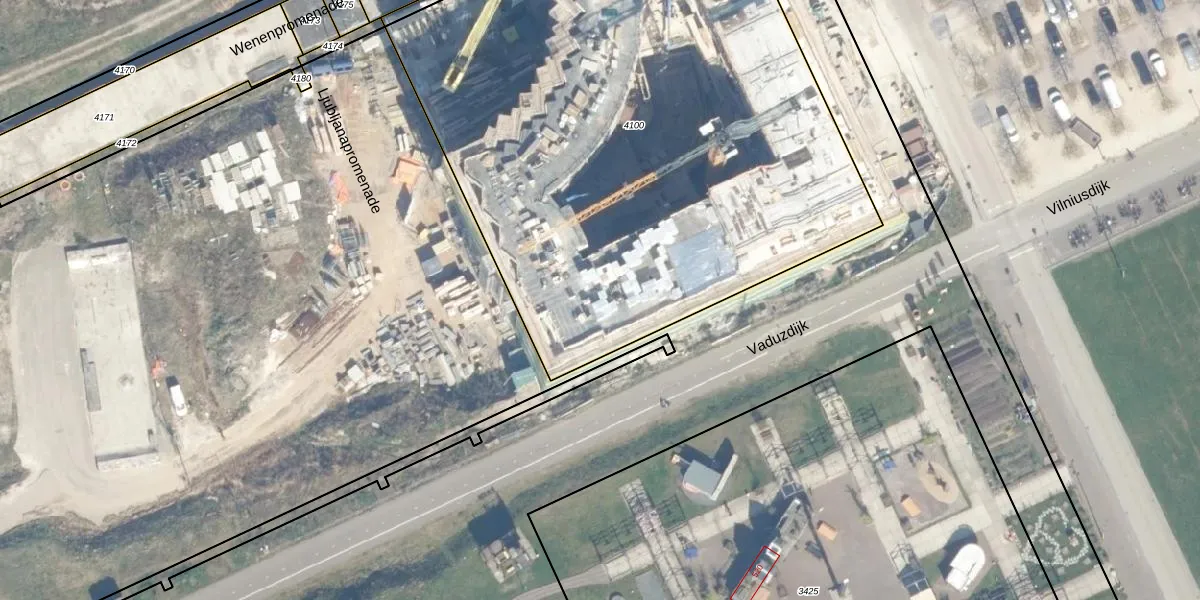 Het perceel waarop Vaduzdijk 179 staat heeft een oppervlakte van 4001 m². Dit is een zeer groot perceel. De perceeloppervlakte wordt geregistreerd door het Kadaster. Gedetailleerde informatie over de maten van dit perceel kunt u vinden in het rapport Kadastrale kaart met maatvoering van Vaduzdijk 179.