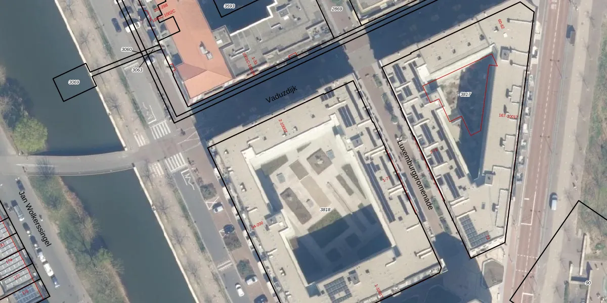 Vaduzdijk 44 is gelegen op kadastraal perceel CTR00F3818. Deze kadastrale aanduiding is uniek en wordt gebruikt door het Kadaster om eigendomsrechten en andere zakelijke rechten vast te leggen. Het perceel maakt onderdeel uit van de kadastrale gemeente Catharijne.