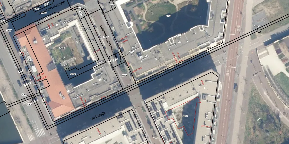 Vaduzdijk 65 is gelegen op kadastraal perceel CTR00F3451. Deze kadastrale aanduiding is uniek en wordt gebruikt door het Kadaster om eigendomsrechten en andere zakelijke rechten vast te leggen. Het perceel maakt onderdeel uit van de kadastrale gemeente Catharijne.
