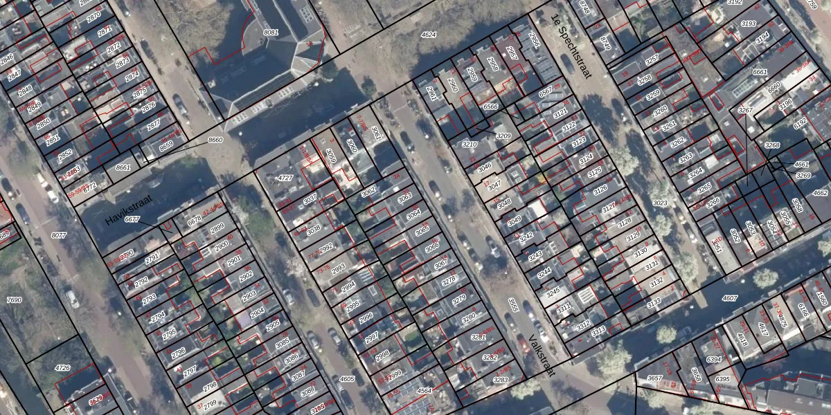 Het perceel waarop Valkstraat 20 staat heeft een oppervlakte van 74 m². Dit is een klein perceel. De perceeloppervlakte wordt geregistreerd door het Kadaster. Gedetailleerde informatie over de maten van dit perceel kunt u vinden in het rapport Kadastrale kaart met maatvoering van Valkstraat 20.