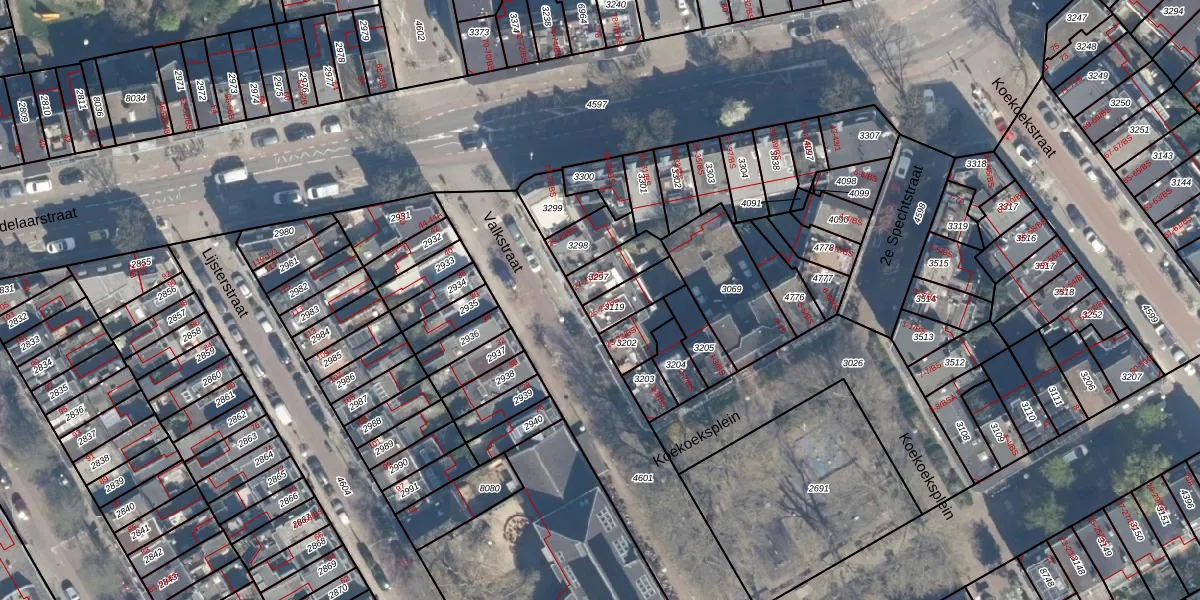 Het perceel waarop Valkstraat 25 staat heeft een oppervlakte van 93 m². Dit is een klein perceel. De perceeloppervlakte wordt geregistreerd door het Kadaster. Gedetailleerde informatie over de maten van dit perceel kunt u vinden in het rapport Kadastrale kaart met maatvoering van Valkstraat 25.