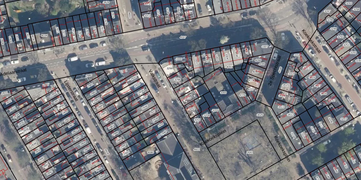 Het perceel waarop Valkstraat 27-BS staat heeft een oppervlakte van 92 m². Dit is een klein perceel. De perceeloppervlakte wordt geregistreerd door het Kadaster. Gedetailleerde informatie over de maten van dit perceel kunt u vinden in het rapport Kadastrale kaart met maatvoering van Valkstraat 27-BS.